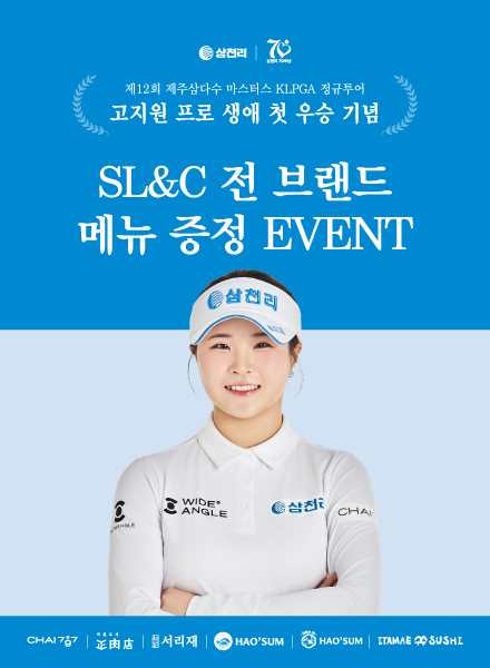 올해 창립 70주년을 맞이한 삼천리그룹에서 외식 사업을 전개하는 SL&C는 고지원 프로의 뜻 깊은 생애 첫 우승을 기념하여 5만원 이상 구매 고객을 대상으로 ▶모던 중식당 ‘Chai797’이 유린기와 밀크티 ▶홍콩식 대중음식점 ‘호우섬’이 크런치 유린기와 밀크티, ‘살롱드호우섬’이 홍콩식 크림 유린기와 밀크티 ▶직화구이 전문점 ‘서리재’가 함흥냉면과 단호박식혜 ▶정통 에도마에 전문점 ‘이타마에 스시’가 혼마구로 사시미를 증정한다. 한우 등심 전문점 ‘바른고기 정육점’은 구이 2인 이상 구매 고객을 대상으로 한우육회를 증정하는 풍성한 이벤트를 벌인다.
