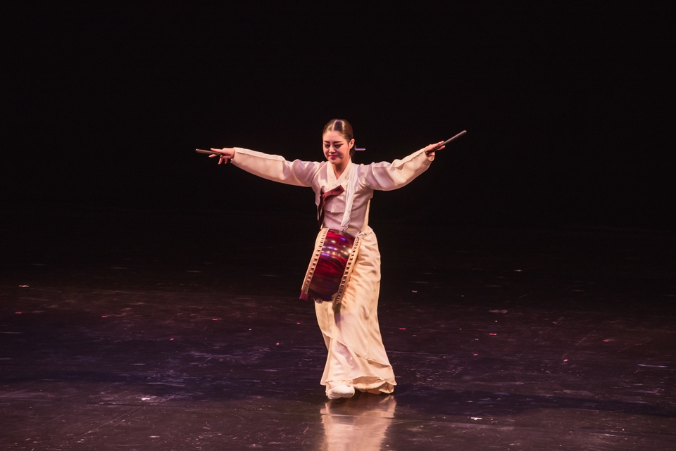마지막 오북춤은 무용수 뒤와 좌우에 놓인 다섯 개의 북을 활용해 춤과 연주가 하나로 결합된 대표적 타악무다. 송현주 명무의 섬세한 춤선, 장구 이은미 단원의 단단한 리듬감, 김진미 단원의 태평소가 더해져 무(舞)와 악(樂)이 하나의 호흡으로 이어지는 무대가 펼쳐져 공연의 클라이맥스를 장식한다.