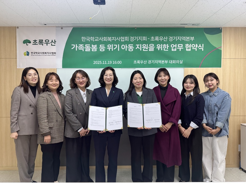 초록우산 경기지역본부가 19일 한국학교사회복지사협회 경기지회와 가족돌봄 등 위기아동 지원을 위한 업무협약을 체결했다.