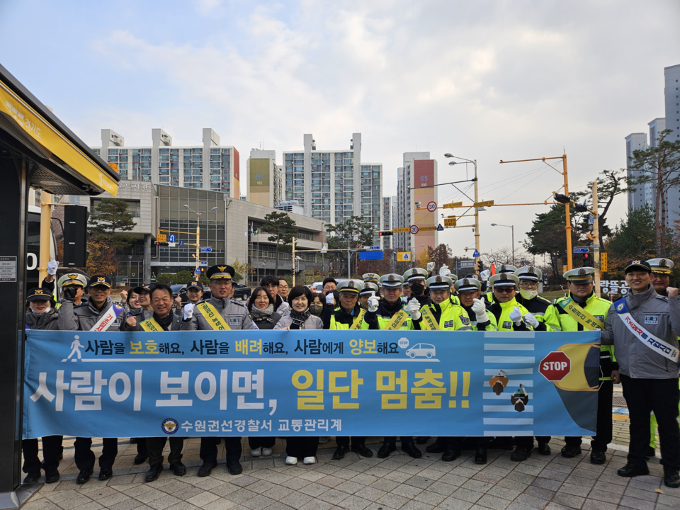 이날 김태영 서장을 비롯한 김종석 권선구청장, 시 교통정책과장, 녹색어머니연합회, 모범운전자회 등 50여 명은 초·중·고등학교 밀집지역인 호매실도서관 앞 사거리에서 캠페인을 진행했다.