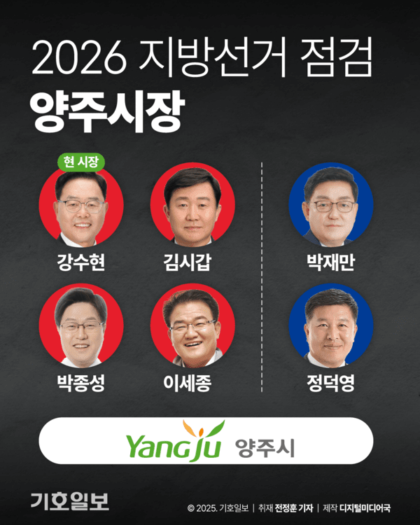 많이 본 뉴스 1 성남 “월판선에 판교원역 신설” 강력 촉구 2 정부 대출규제·갱신권 강화 여파… 송도 서민 전세대란에 ‘발동동’ 3 보수 텃밭서 맞붙는 ‘의정부고 동문’ 대전 4 안산시 혁신도시로 변신 중 5 인천 연수구 옹암체육센터 보수 과정서 하자 되레 늘어 ‘부실시공’ 불안감 팽배 6 [카드뉴스] 서민 울린 초고금리 지옥…불법 사금융 조직 61명 검거 7 경기도의회 운영위 행감 또 파행 해빙 무드 협치 다시 얼었다 8 [카드뉴스] 담배꽁초 한 개가 큰불로…매년 10억 재산 피해 9 [숏폼뉴스] 오산시장 선거, 이권재 수성 vs 민주당 탈환 ‘대격돌’ 전망 | 2026 지방선거 누가 뛰나 10 現 김경희 vs 前 엄태준 리턴매치 성사될까
